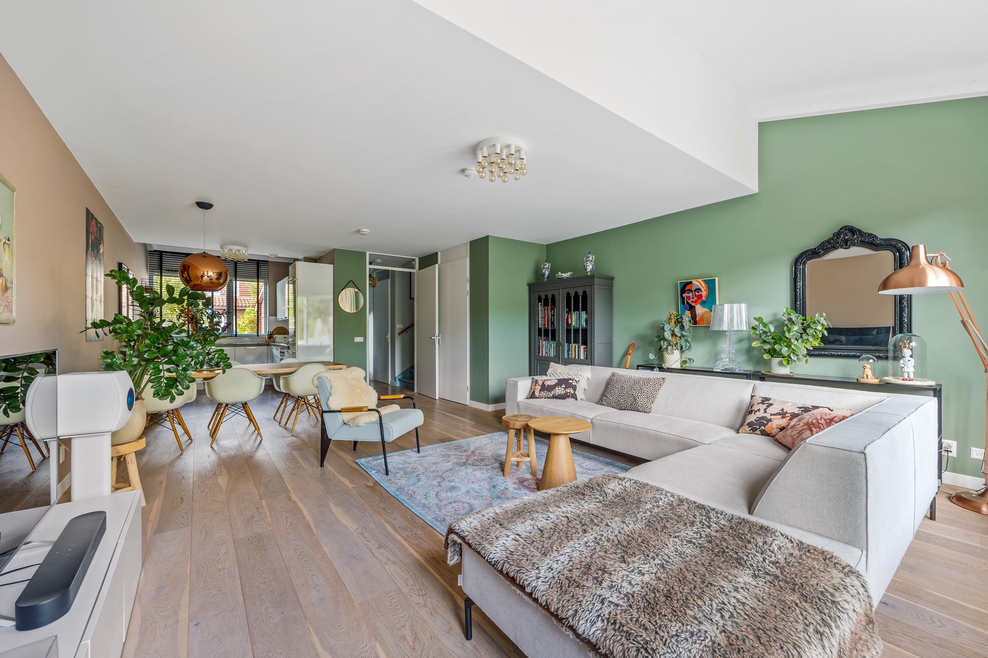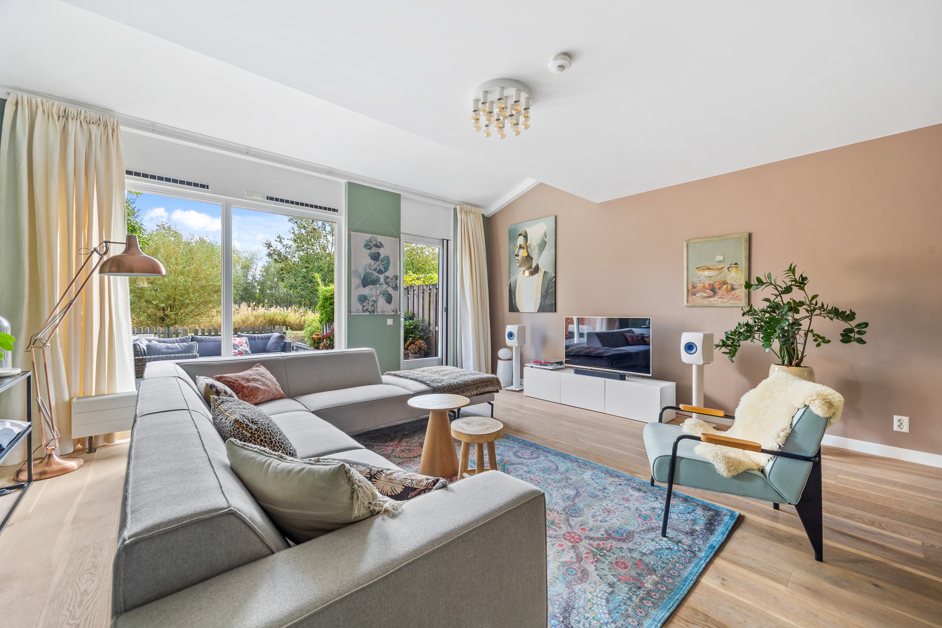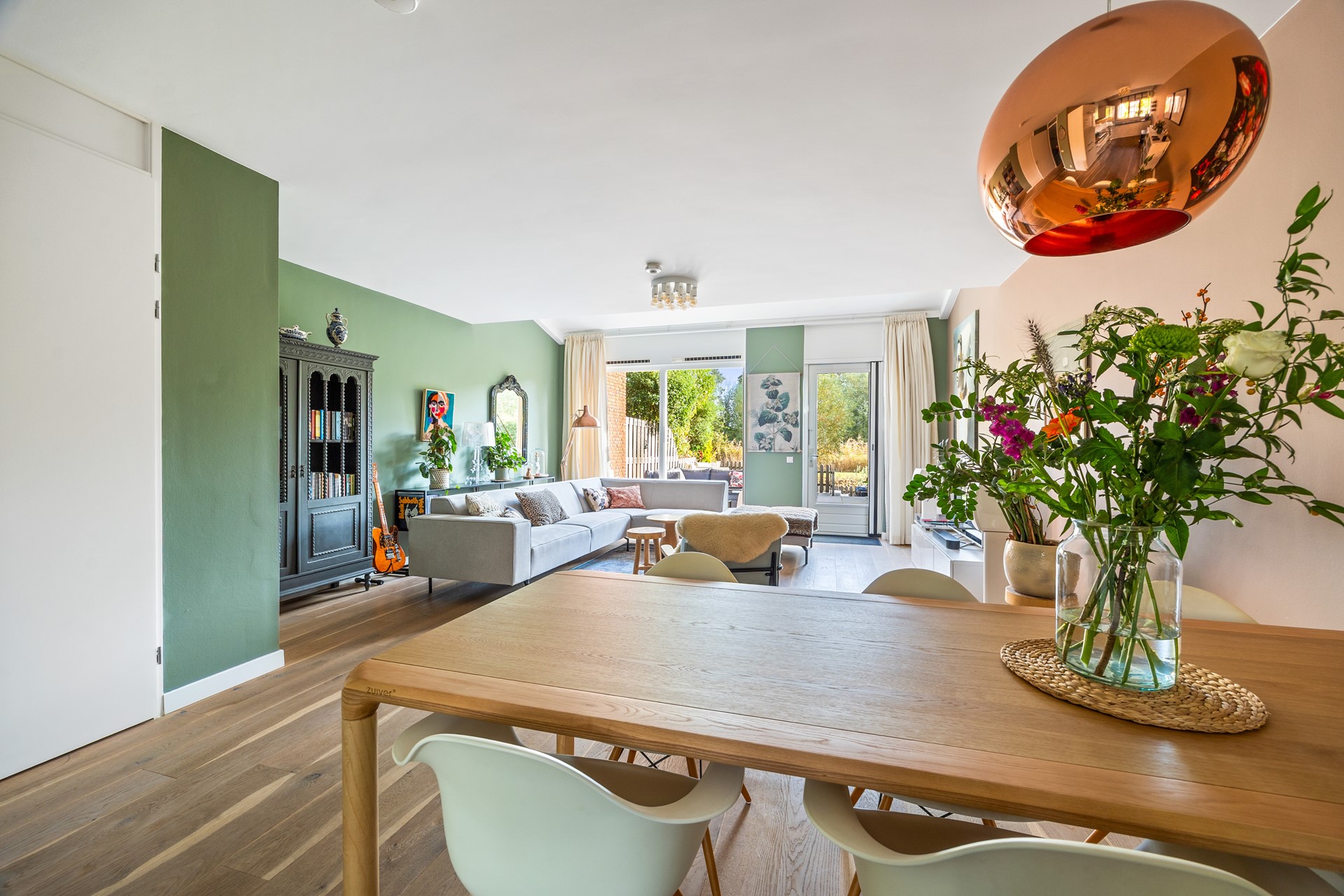 From the street, you see the house, slightly tucked away between two hedges and a small tree. The front garden is therefore a pleasant, private place to sit. The spacious hallway features an oak parquet floor that connects all rooms on the ground floor.