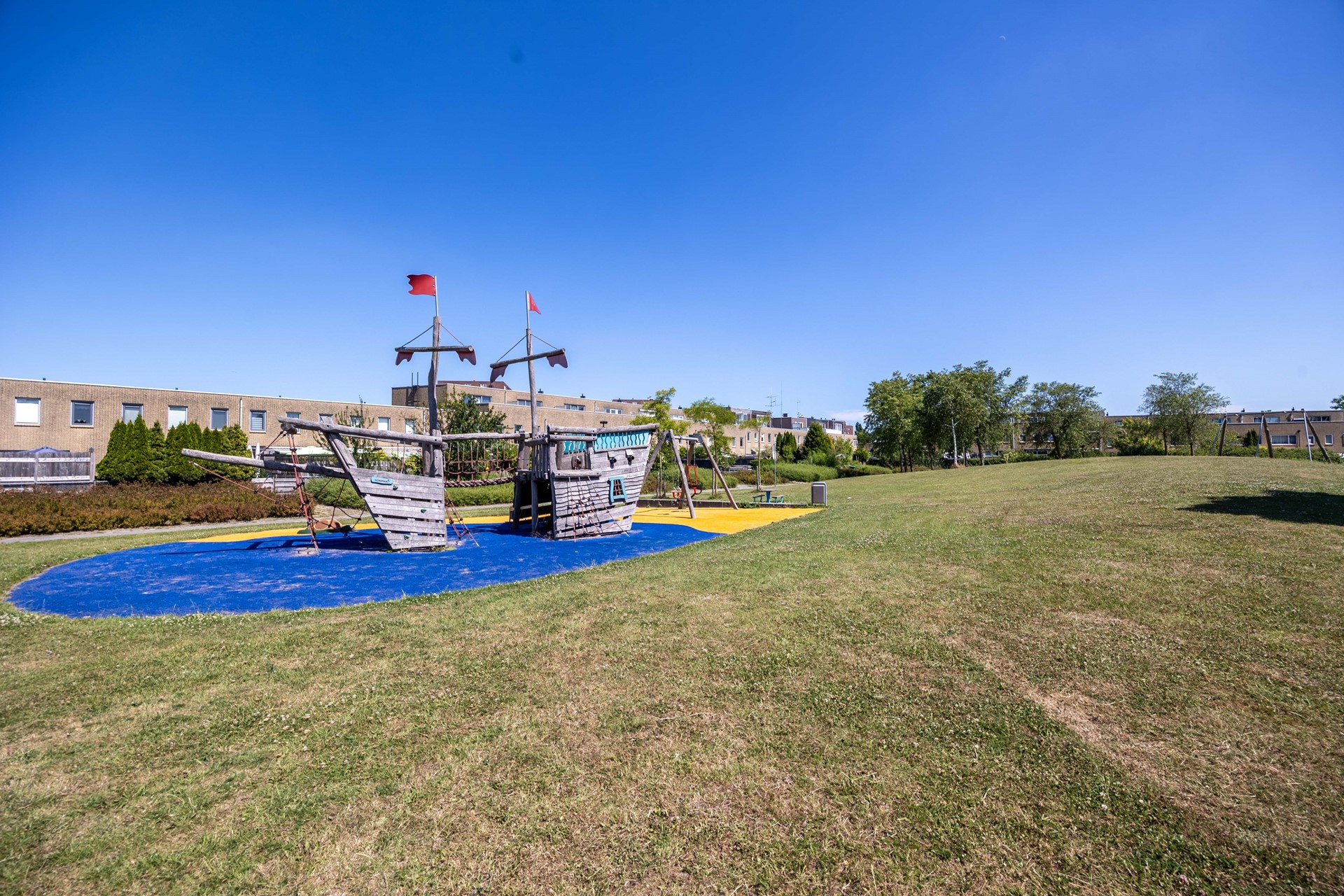 Heeft u jongere kinderen? Dan moet u zeker even gaan kijken bij de speelweide achter de woning. Een geweldige plek, inclusief een heus Piratenschip, om vlakbij huis heerlijk en veilig te kunnen spelen!