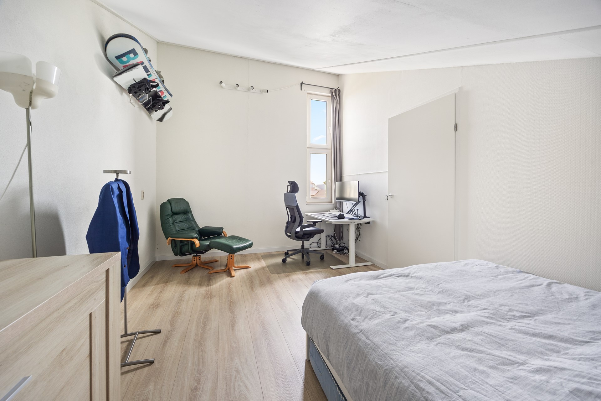 De volgende trap brengt u naar de tweede verdieping. Hier vindt u een grote vierde slaapkamer – met laminaatvoer – over de gehele lengte van de woning. Via de overloop bereikt u de ruimte voor de witgoedopstelling en de omvormer voor de 11 zonnepanelen die op het dak liggen en zorgen voor een zeer lage energierekening.